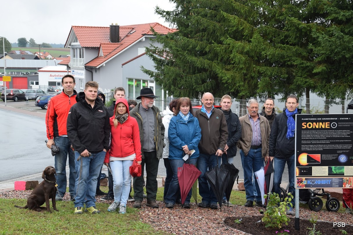 Am vergangenen Sonntag wurde der Planetenweg im Beisein geladener Gäste und Förderer durch Jürgen Väth, der die Idee für diesen Weg hatte, eröffnet. Dieser Weg stellt die für einen Menschen unglaublichen Entfernungen in unserem Sonnensystem in überschaubaren Größenverhältnissen dar. Der hier angewande Maßstab von 1:959.032 schrumpft die Entfernung zum sonnenentferntesten Kleinplaneten Pluto von 5.946.000.000 km auf 6,2 km. Der Träger des Planetenweges ist die Gemeinde Bischbrunn, Errichter und Betreiber des Weges der Verein Privatsternwarte Bischbrunn e.V.